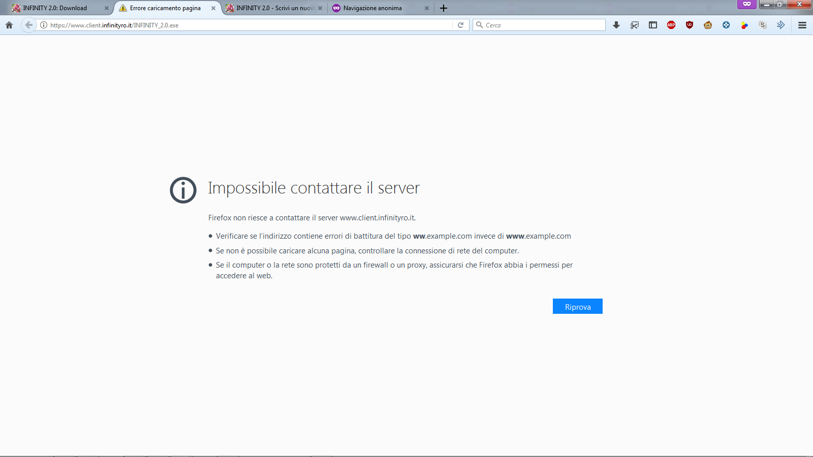 Impossibile contattare il server