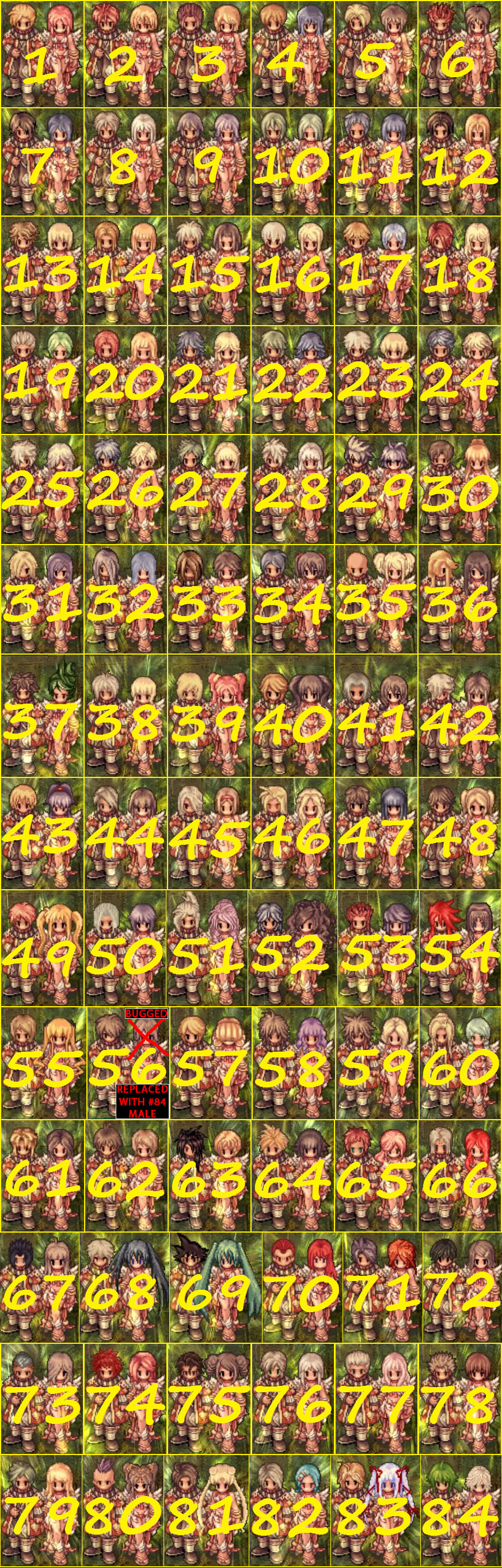 ITA A causa di una incompatibilità con le palette dei colori siamo stati costretti a sostituire lo stile di capelli numero 56 femminile con una copia del numero 84 maschile che neanche a farlo apposta riteniamo sia più per personaggi femminili che maschili... riteniamo siano stati invertiti erroneamente dal suo creatore ma ce li vogliamo tenere cosi per utilizzarli come "jolly" in casi di bug come questo appena sistemato.